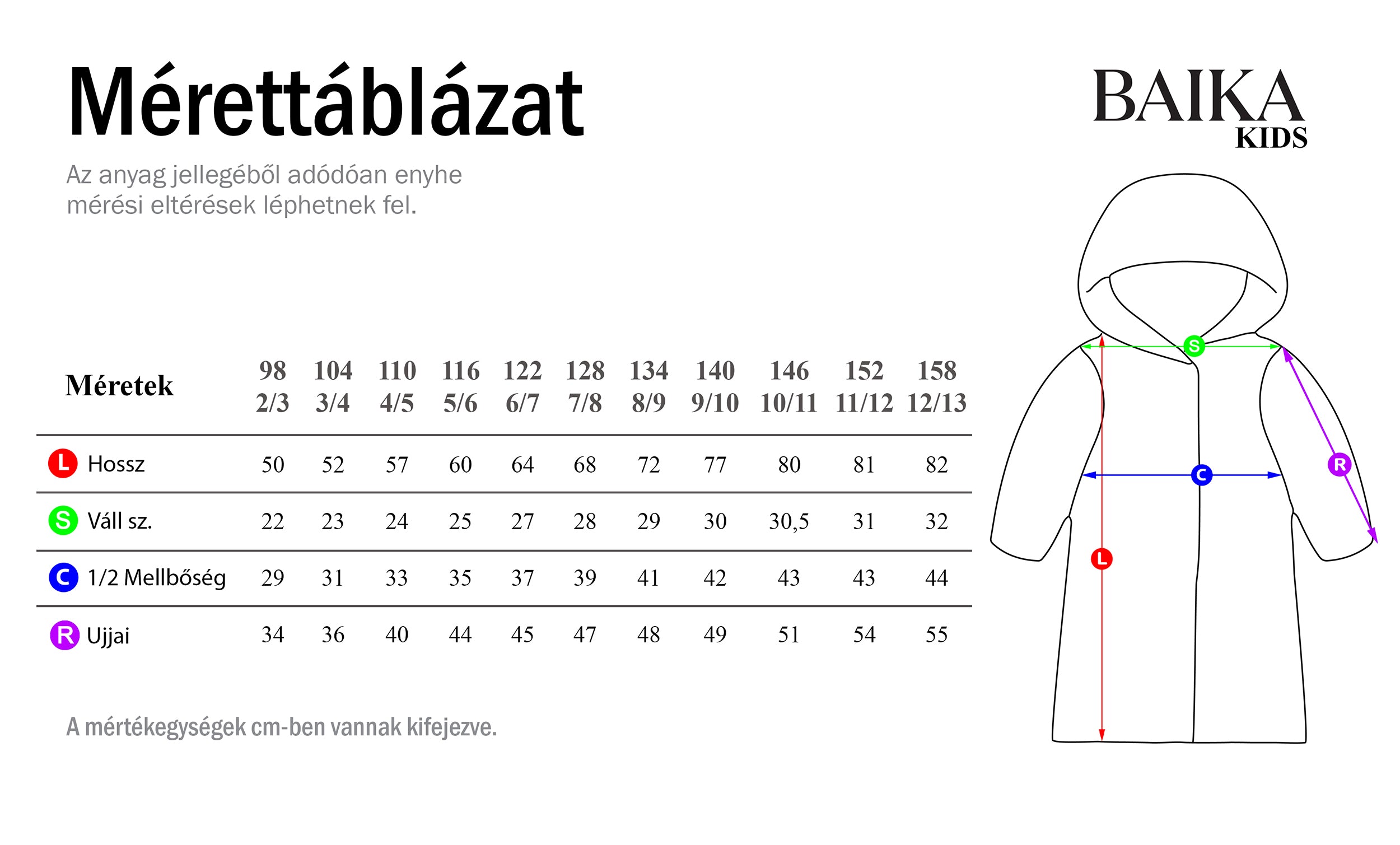 Mérettáblázat