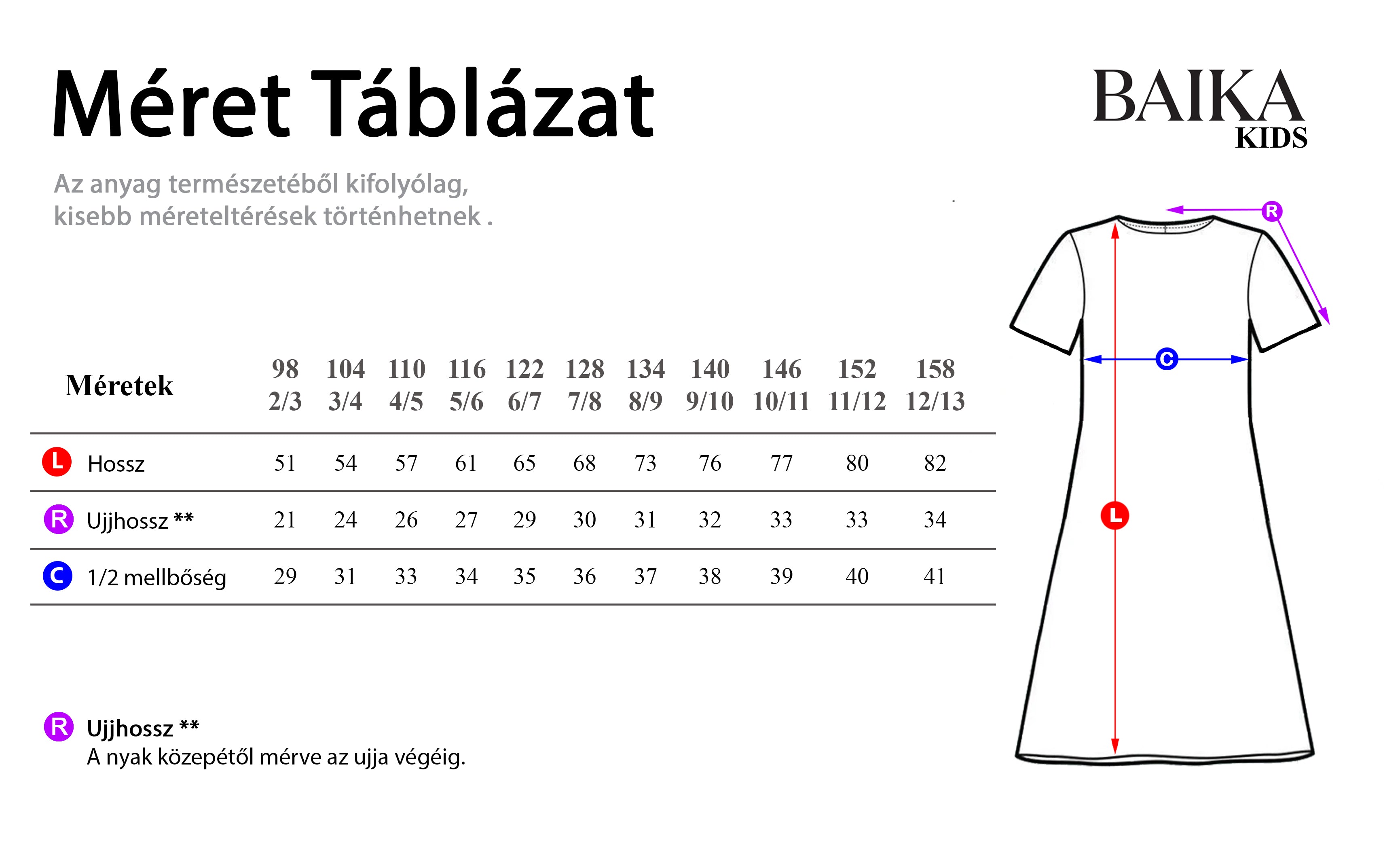 Mérettáblázat