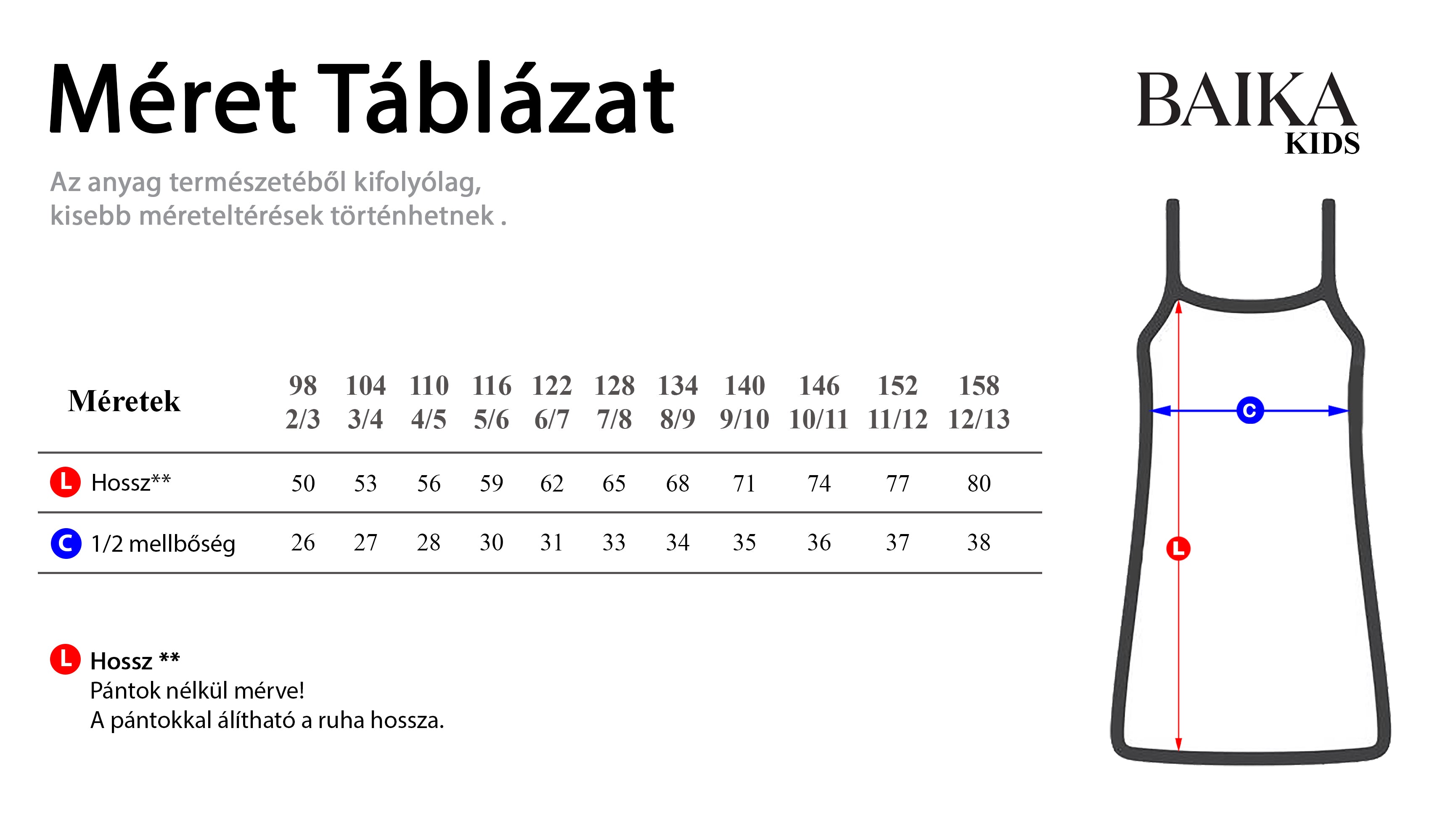 Mérettáblázat