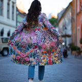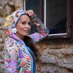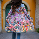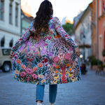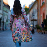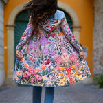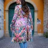 Virágzó kertet idéző grafikus minta, lágy esés és könnyed mozgás: a kapucnis, cipzáras női kabát a pulóver/pulcsi kényelmét és a kabát strukturáltságát hozza, így elegáns, mégis laza választás városi napokra és hétvégi programokra.