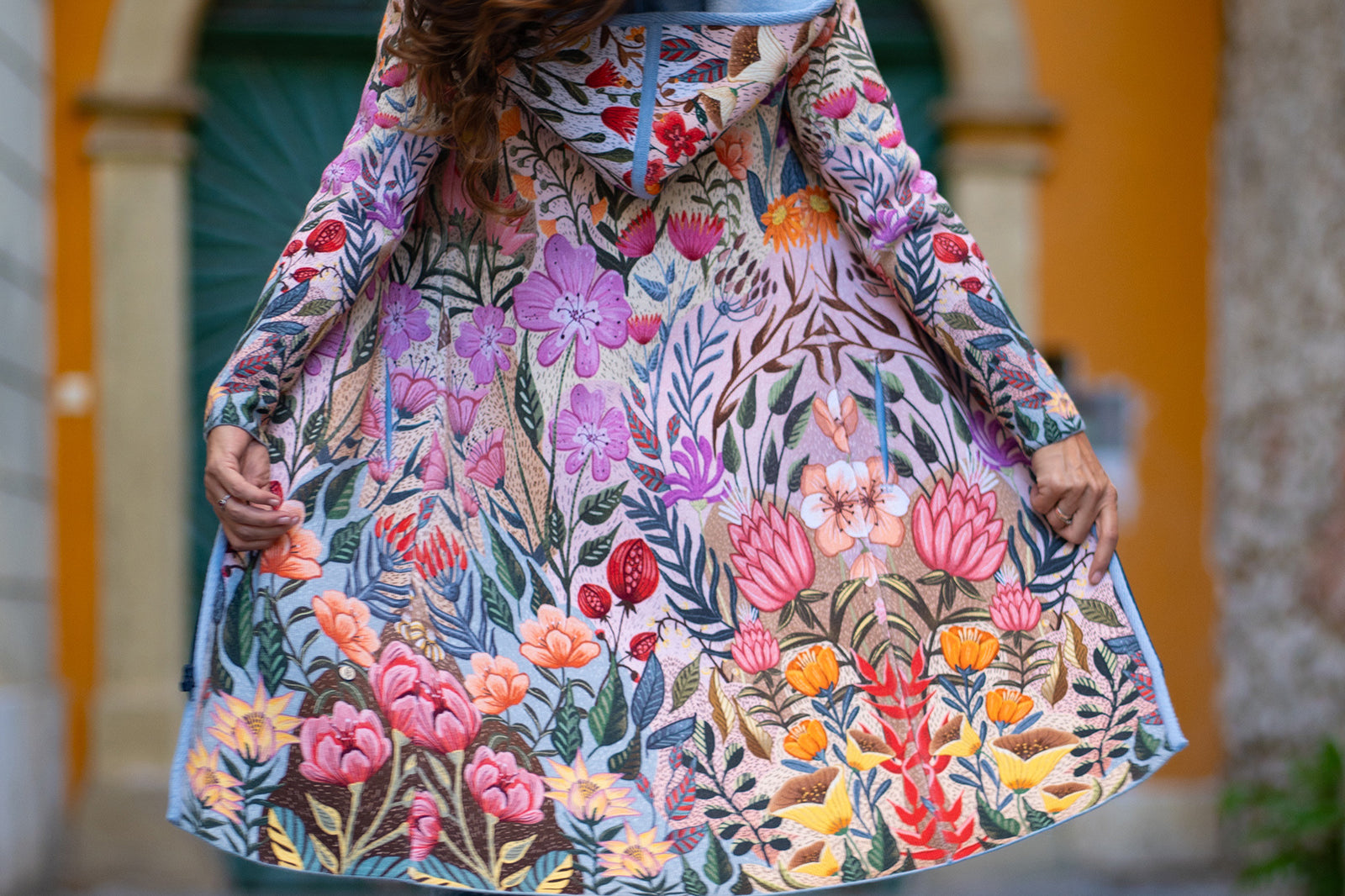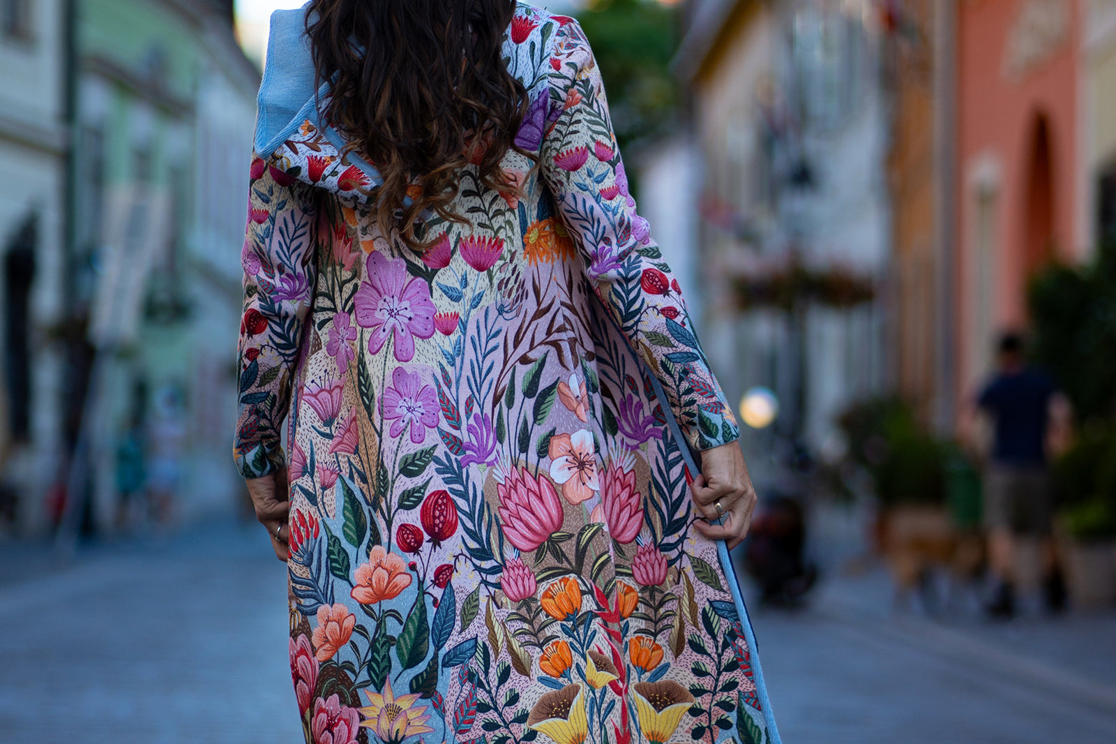 Időtálló styling: a sokszínű, virágos paletta farmerrel, csizmával vagy sneakersszel is működik; kapszulagardrób-barát kötött kabát, amely casual és smart-casual öltözékben is könnyen beépíthető.