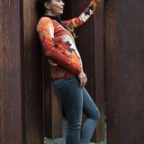 A Vörös Daru rövid kardigán a BAIKA karakteres darabja: gazdag, vörös tónusok, stilizált daru-motívum, kényelmes, rétegezhető fazon. Egy egyedi, mintás kötött, cipzáras pamut kardigán, amely azonnal emeli a megjelenést – munkanapokon és hétvégén is.